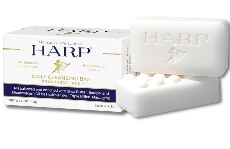 HARP® FRAGRANCE FREE Body Wash Bar – pH Balanced (5.0–6.0) Syndet Cleanser, No Lye, Non-Comedogenic, Gentle for Sensitive & Dry Skin, With Shea Butter & Borage Oil. 5oz Bars